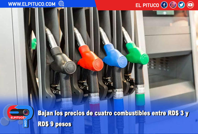 Bajan los precios de cuatro combustibles entre RD$ 3 y RD$ 9 pesos