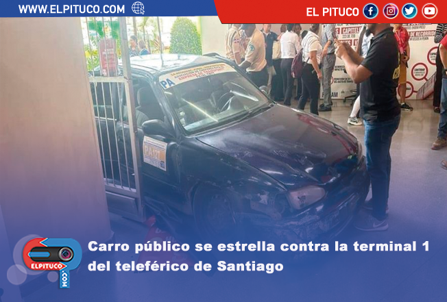 Un vehículo perteneciente a la ruta de transporte urbano de Santiago perdió el control y se estrelló contra la terminal 1 del teleférico de Santiago, impactando la baranda y la puerta de acceso de la estación.