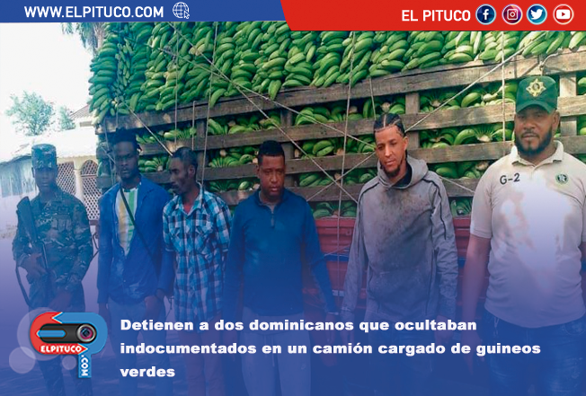Dos hombres de nacionalidad dominicana fueron detenidos por miembros del Ejército de República cuando transportaban a dos haitianos indocumentados ocultos en un camión cargado de guineos verdes, en el puesto de chequeo militar Bontoncillo en Montecristi.