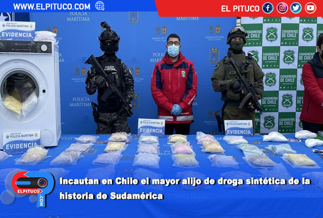 Una operación conjunta realizada por autoridades de Chile permitió incautar el cargamento de droga sintética más importante de la historia de Sudamérica. El procedimiento tuvo lugar en el puerto de Valparaíso, donde fueron hallados 184 kilos de metanfetamina, equivalente a unas 520.000 dosis de éxtasis, que estaban ocultos en electrodomésticos. Su valor es de unos 11 millones de dólares.