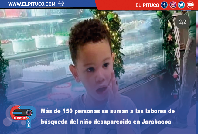 Más de 150 personas se sumaron ayer a las labores de búsqueda del niño Roldanis Calderón, de tres años, quien está desaparecido desde el domingo 30 de marzo en el distrito municipal de Manabao, Jarabacoa, provincia La Vega.