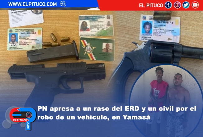 PN apresa a un raso del ERD y un civil por el robo de un vehículo, en Yamasá