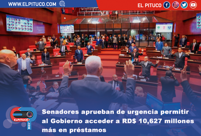 El Senado de la República aprobó este lunes de urgencia elevar el monto autorizado en la Ley 90-24 sobre la cantidad de “deuda pública” establecida en el Presupuesto General del Estado de este año, aumentándole RD$ 10,627 millones que podrá utilizar el Poder Ejecutivo en la realización de préstamos con entidades financieras.